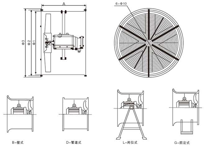 ◆ 通風(fēng)機(jī)由防爆電動機(jī)、葉輪、風(fēng)筒、防護(hù)罩百葉窗等組成;
